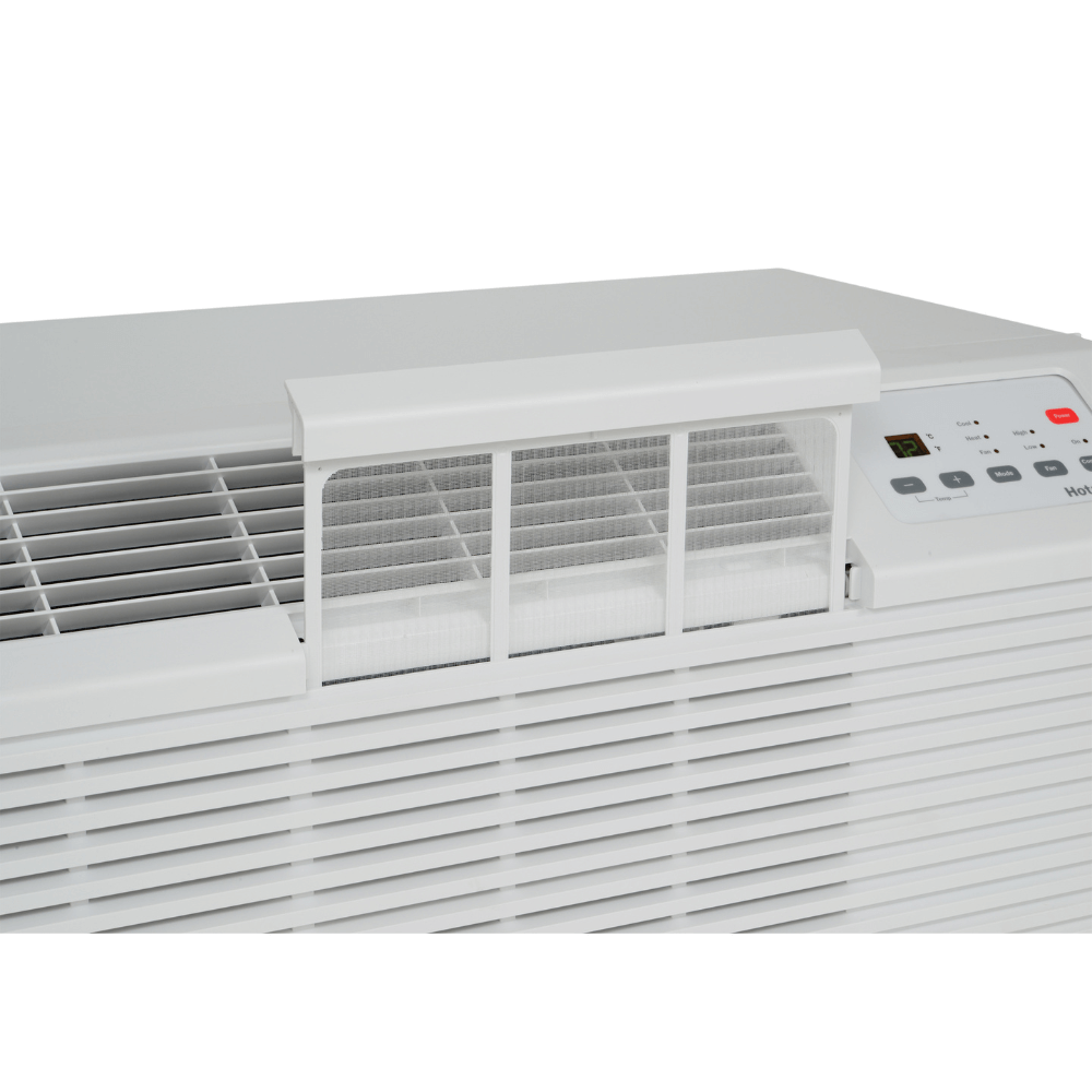 Reliable Comfort and Energy Efficiency The Hotpoint® PTAC AHES09D3XXA delivers 9,000 BTU of cooling and 3.5 kW electric heating, ensuring optimal comfort. Its user-friendly design and safety features make it ideal for hotel and motel installations.
