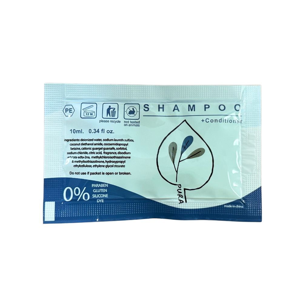Provide your guests with the convenience of Pura Collection's combined shampoo and conditioner in single-use 0.34 oz packets. Designed for all hair types, these packets ensure a refreshing and hassle-free hair care experience, making them an excellent addition to your hospitality amenities.