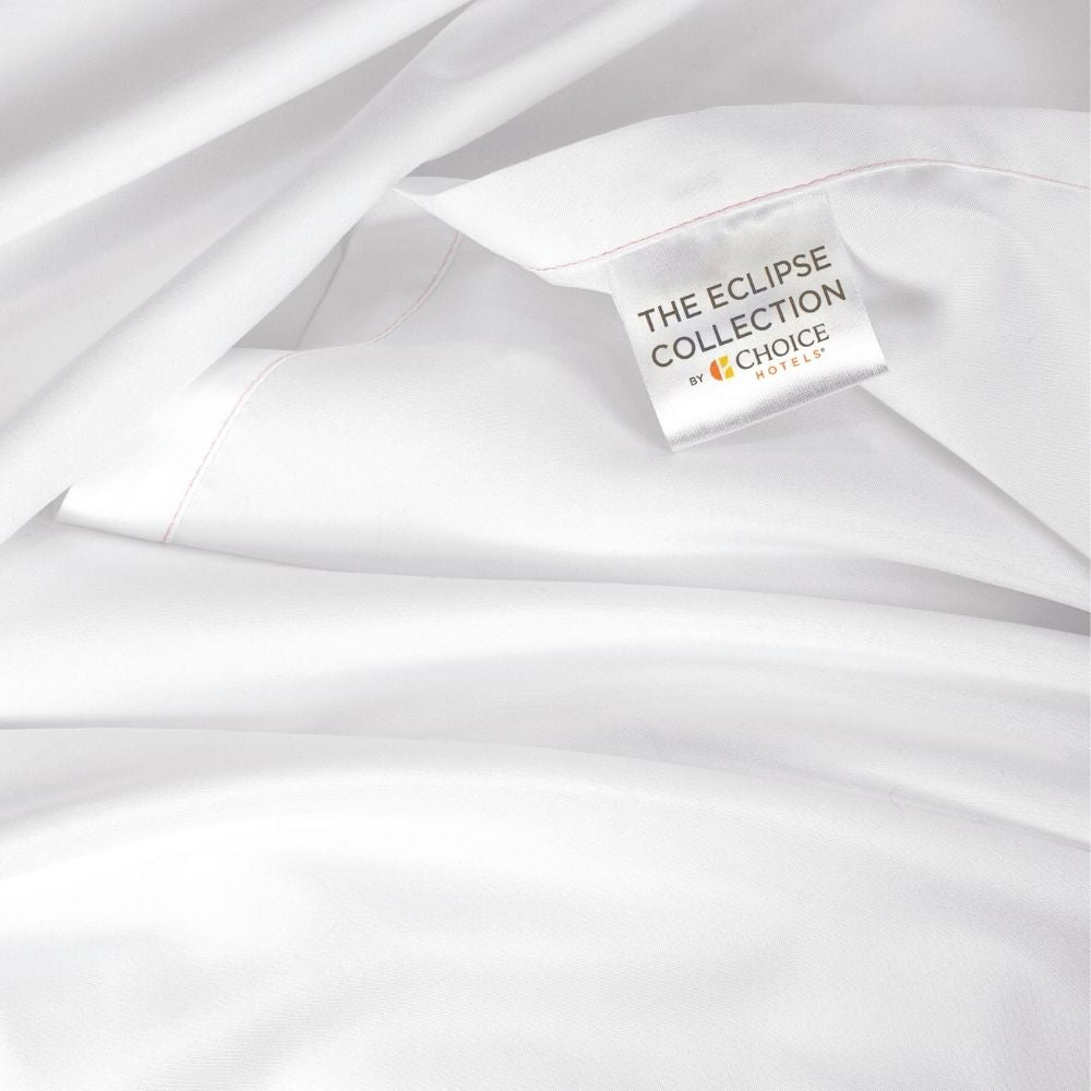 The Choice Hotels Eclipse Collection Full/Double Extra Deep Pocket Fitted Sheet [0039560] is designed to accommodate thicker Full/Double mattresses, including those with pillow tops. Its 15-inch pocket depth ensures a secure fit, while the soft microfiber provides guest comfort.