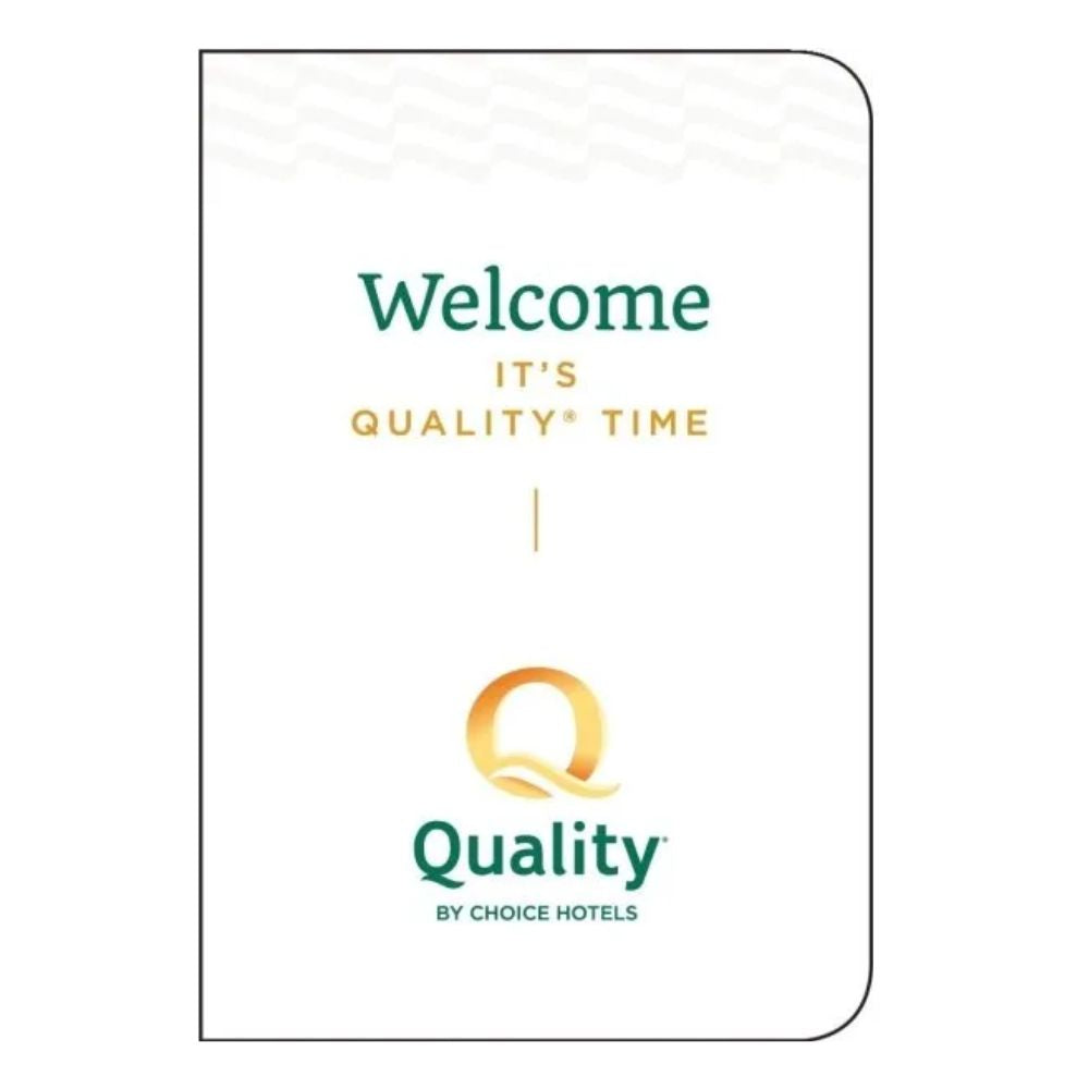 Enhance your guests' check-in experience with Quality Inn's branded key folders. Measuring 2.375" x 3.5" when folded, these folders feature a full-color, brand-approved design that aligns with Quality Inn's commitment to quality and professionalism. Each folder provides space to write the guest's room number and Wi-Fi password, ensuring a seamless and organized check-in process. Packaged in cases of 500, these key folders are ideal for maintaining a consistent and professional presentation at your front desk.