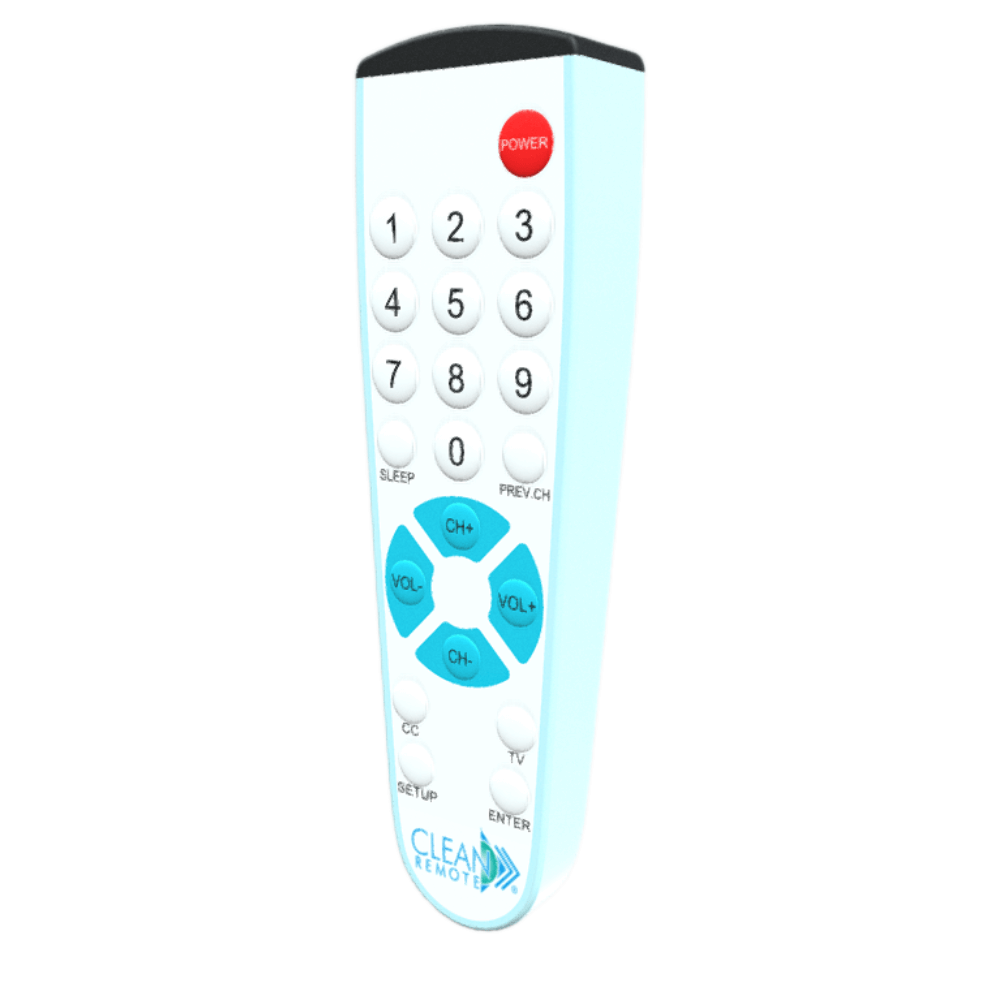 The CR2BB Clean Remote is a big button universal TV remote control specifically designed for hospitality and healthcare settings. It is pre-set for Samsung, LG, and RCA TVs and offers easy one-touch setup for over 250 other TV brands without the need for codes. Clinically tested to be 99% cleaner than other remotes, this remote is perfect for high-use areas due to its spill-proof, easy-to-clean, nonporous surface. Its hidden battery compartment, with an optional screw for added security, ensures guests and patients cannot tamper with the settings. Ideal for use in hotels, hospitals, and other healthcare facilities, the CR2BB Clean Remote combines convenience with hygiene.