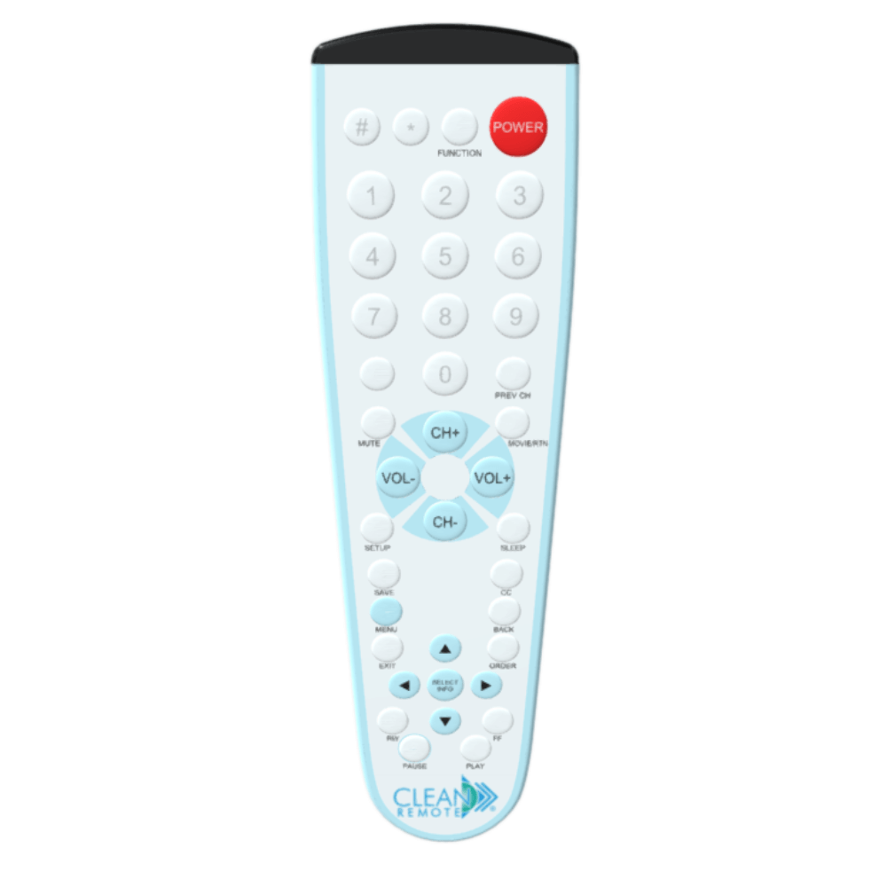 The CR2M Clean Remote is specifically designed for use with Pay-Per-View systems in hospitality and healthcare environments, making it an ideal replacement for Sonifi®, LodgeNet®, and OnCommand® remote controls. This remote's clinically tested, spill-proof, and nonporous design makes it easy to clean and disinfect, perfect for high-use settings. Staff can easily set up the remote while its hidden battery compartment prevents guests or patients from tampering with the TV settings. Combining convenience with hygiene, the CR2M Clean Remote is a valuable addition to hotels, hospitals, and healthcare facilities relying on Pay-Per-View services.