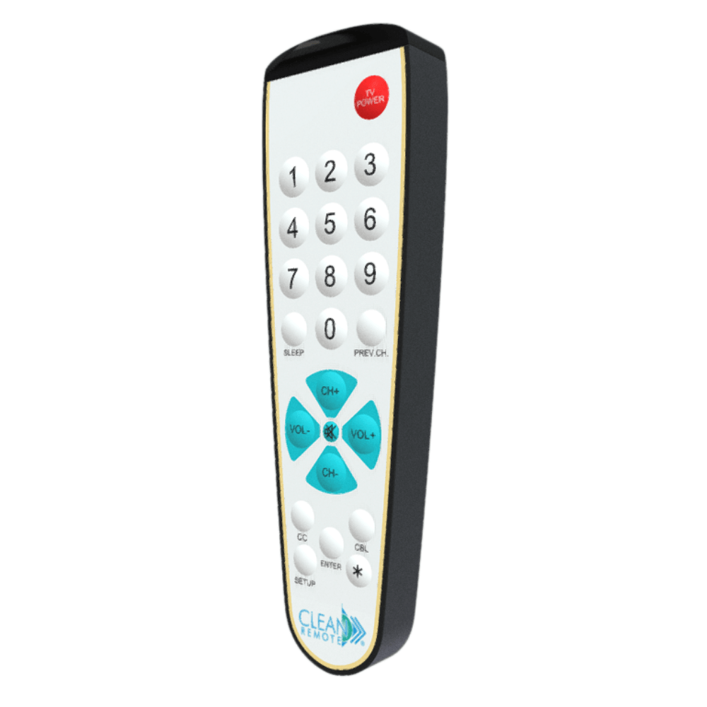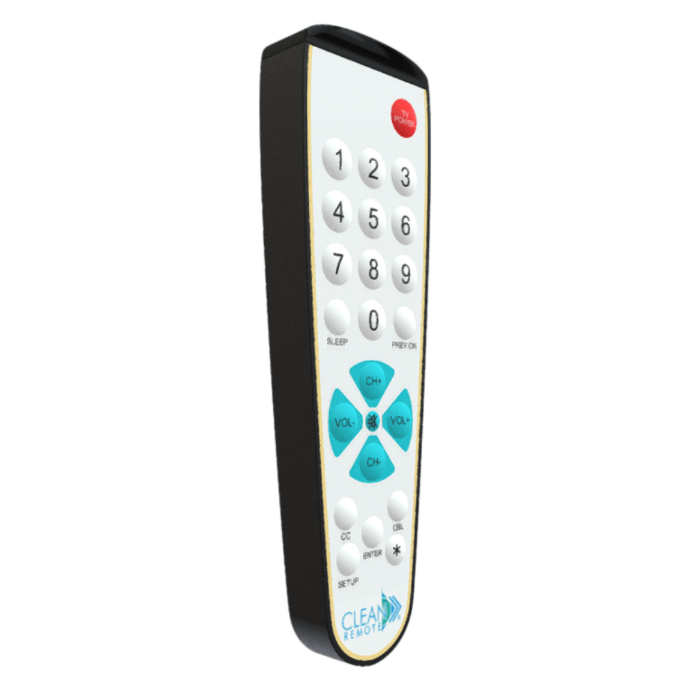 The CR3BCB Clean Remote is a big button universal remote control designed for hospitality and healthcare environments. Ideal for controlling both TVs and in-room cable boxes, it is pre-set for Samsung, LG, and RCA TVs and offers easy one-touch setup for over 250 other TV brands without codes. Compatible with nearly all cable systems, this remote is convenient for hotel or healthcare settings. Its clinically tested design provides a 99% cleaner alternative, featuring a spill-proof, nonporous surface that’s easy to clean. The secure battery compartment, with an optional screw, prevents tampering, ensuring reliable and safe use.