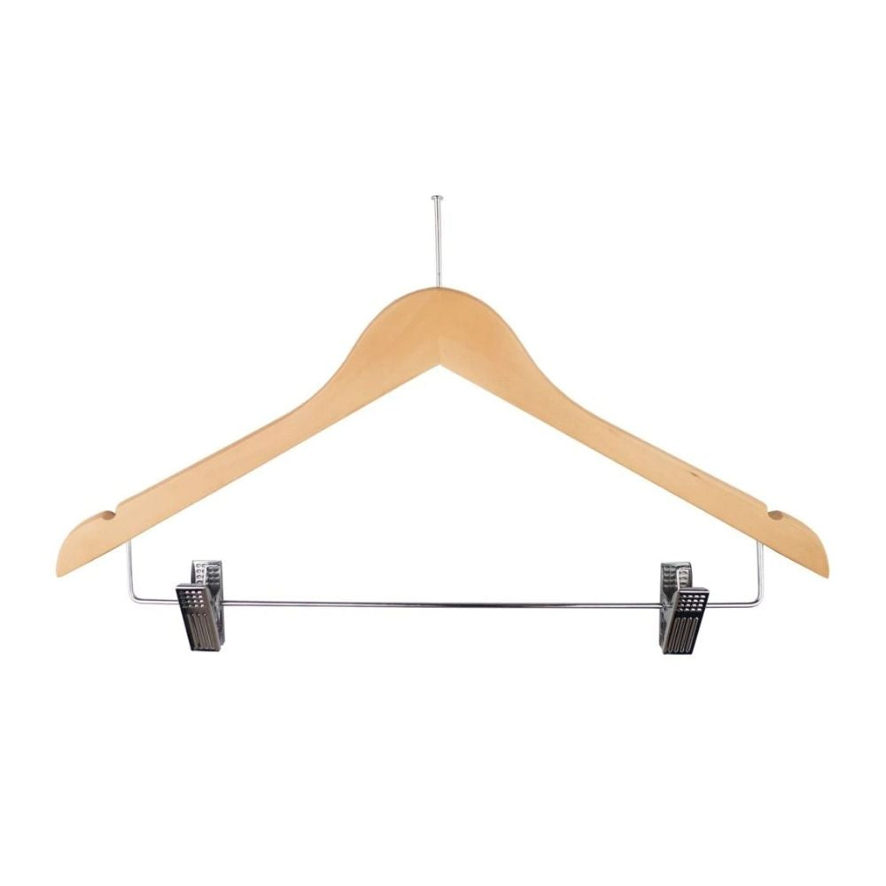 This Women's Hanger in Natural finish is designed for durability and elegance. The ball top hook and flat clips ensure secure hanging for skirts and suits, while the PU coating adds longevity. Ideal for high-traffic hospitality and retail environments.