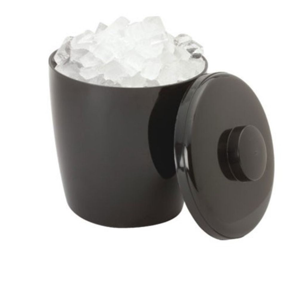 The black round ice bucket, with a 3QT capacity, is an elegant and practical addition to guest rooms. Perfect for high-quality hospitality settings.
