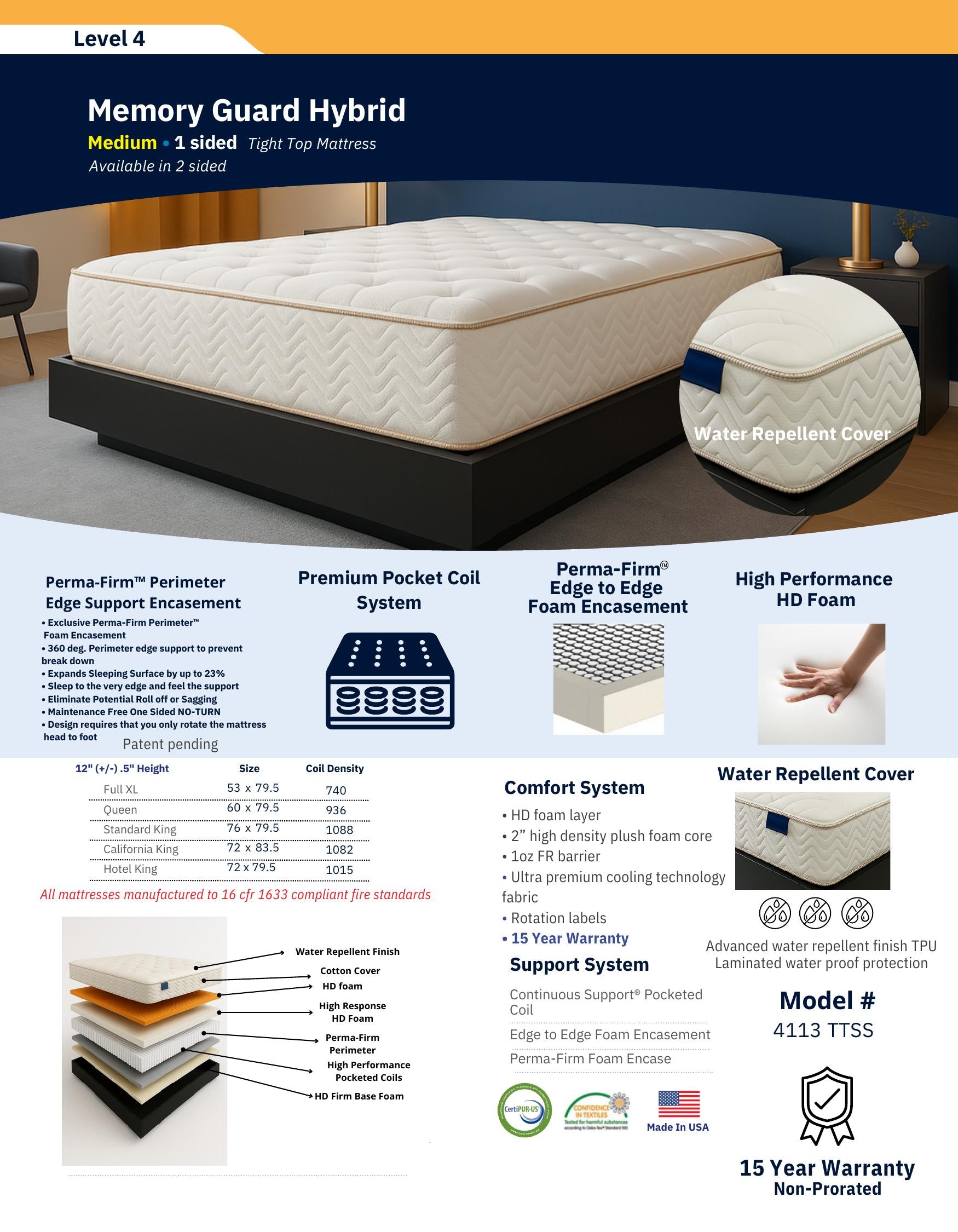 Model 4113 TTSS Memory Guard Hybrid Mattress – Queen (60" x 80")