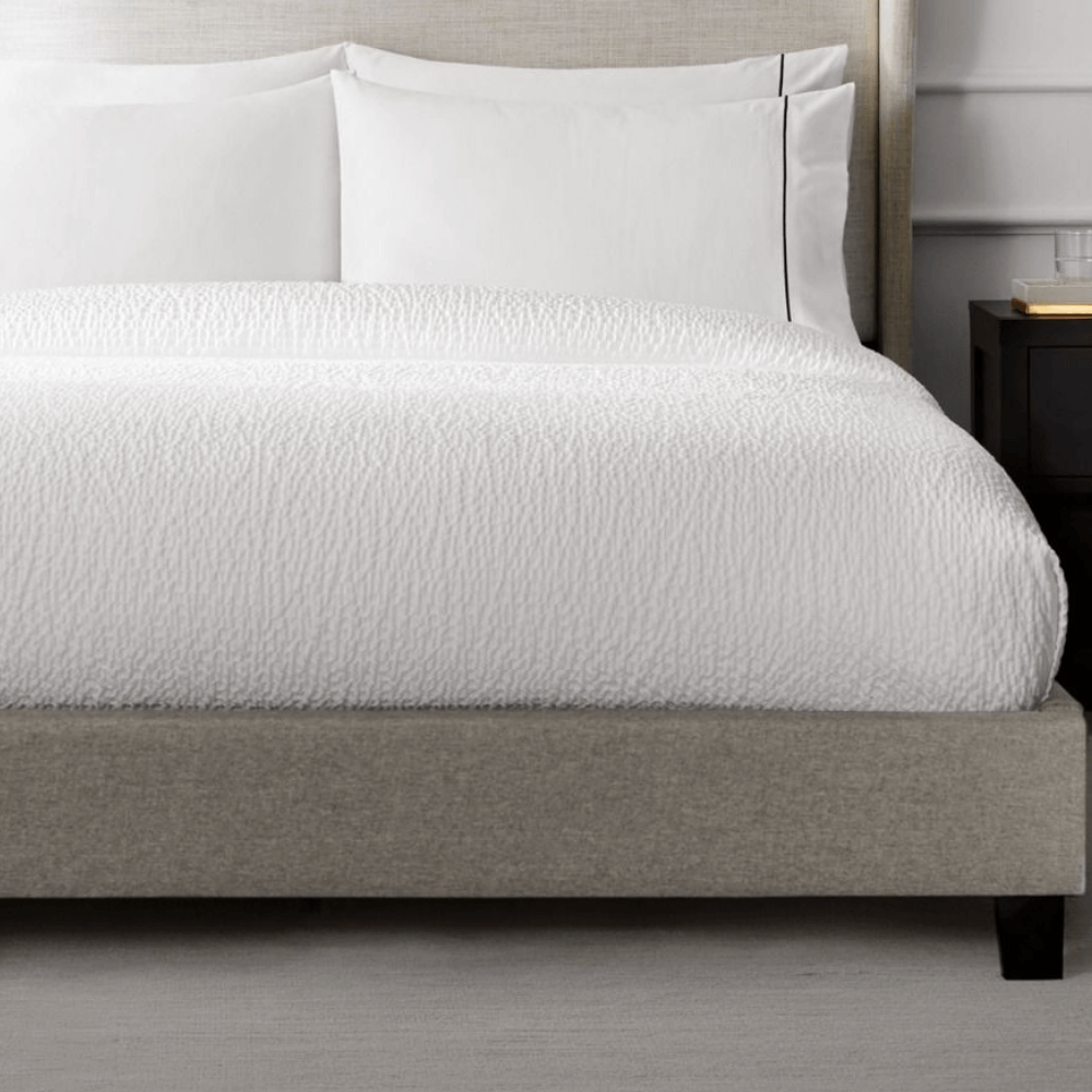 The King-size Ocean Waves decorative top sheet delivers exceptional comfort and durability with its patented TruCore® construction, combining a cotton wrap for softness with a polyester core for long-term performance. Its elegant textured pattern elevates the guestroom experience while withstanding the demands of commercial laundry programs. Perfect for hotels seeking high-quality bedding in bulk, this top sheet provides a premium yet practical solution for everyday hospitality use.