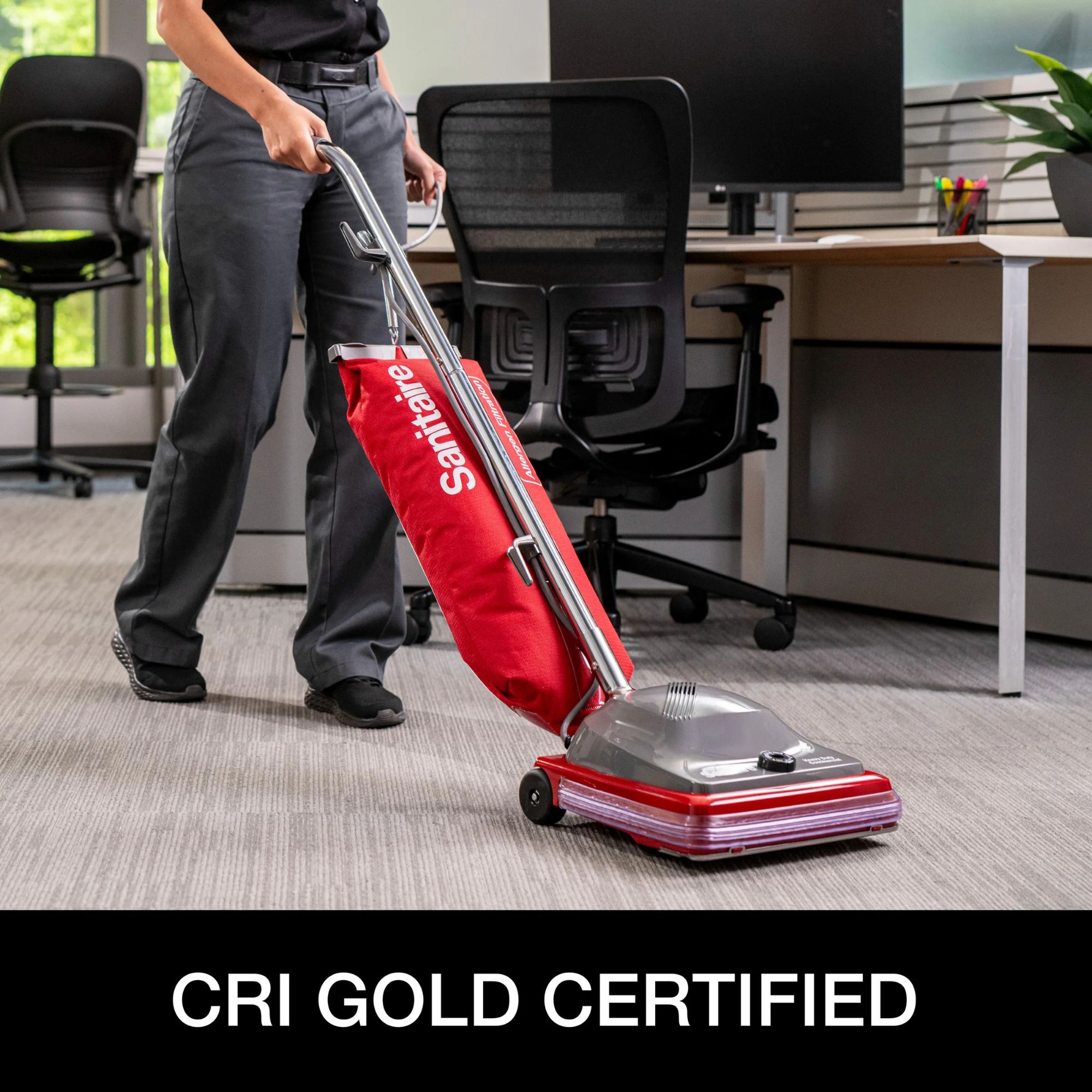 The Sanitaire Tradition SC688B Commercial Upright Vacuum Cleaner is built for heavy-duty cleaning in hotels, motels, and commercial spaces. Featuring a durable chrome hood and a powerful 7-amp motor, this vacuum provides consistent suction for deep cleaning carpets and high-traffic areas. The 50-foot power cord allows for extended reach without frequent unplugging, making it ideal for large spaces.