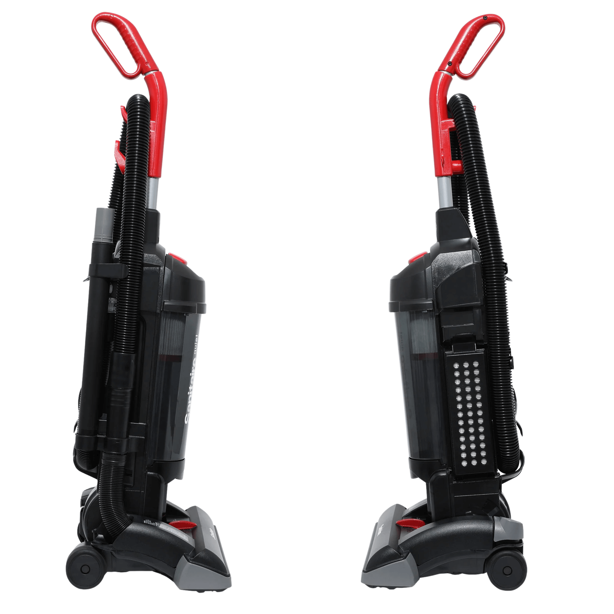 The Sanitaire SC5845D is a bagless commercial vacuum with advanced HEPA filtration, making it an excellent choice for businesses requiring superior air quality. The high-capacity dust cup minimizes downtime, while the wide cleaning path ensures efficient coverage. With commercial durability and on-board tools, this vacuum provides versatile cleaning for both carpets and hard floors.