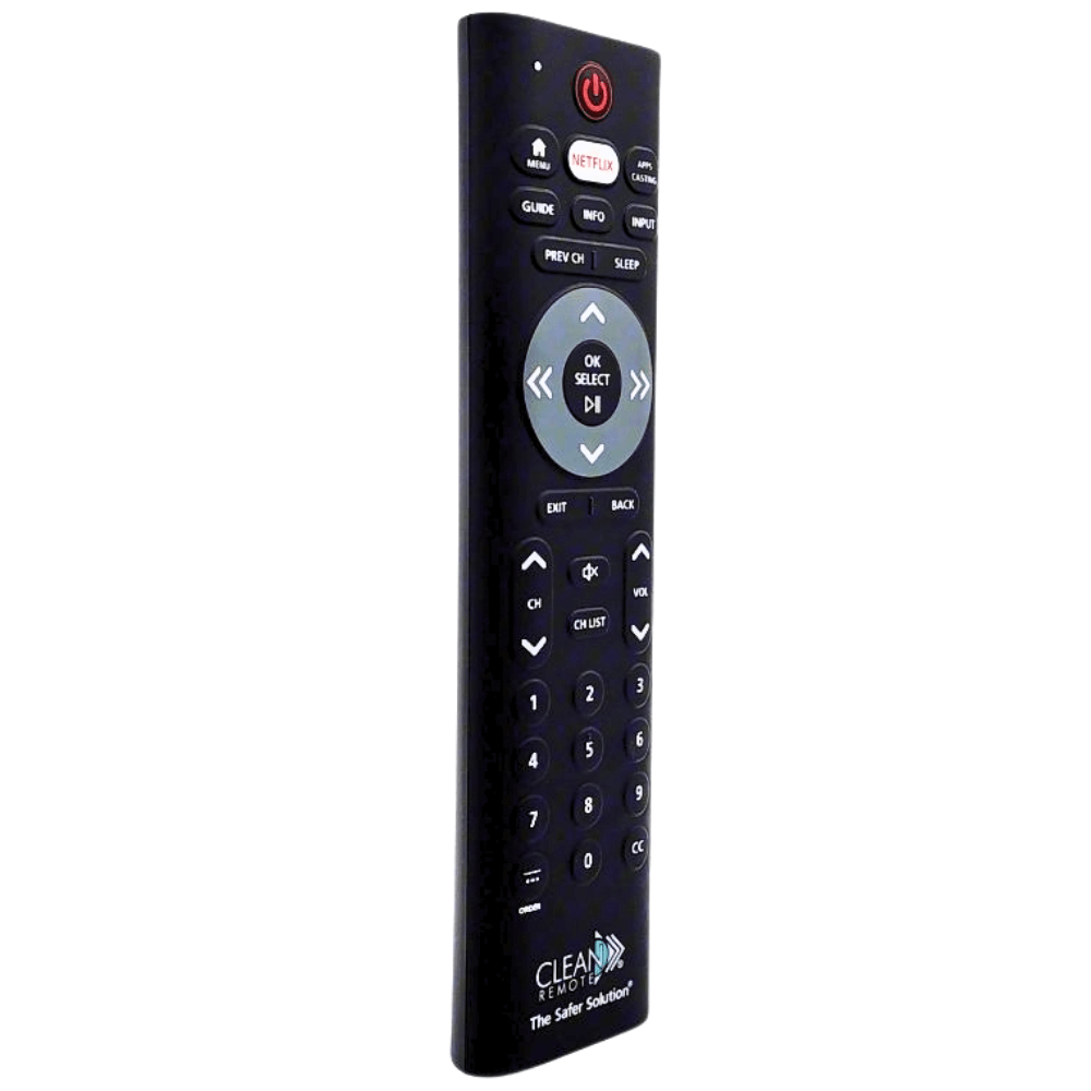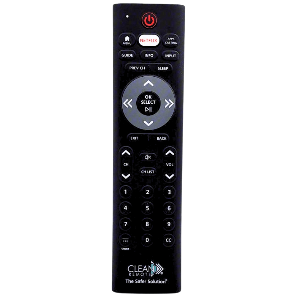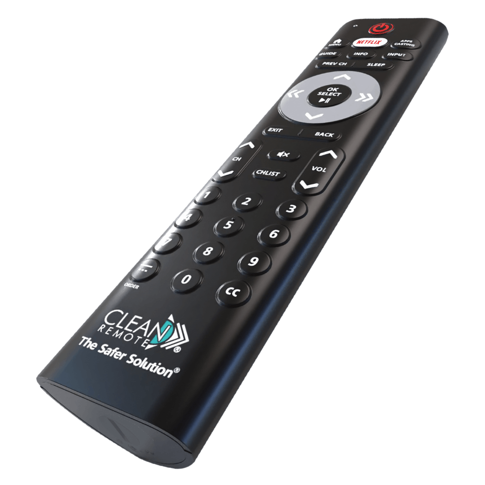 The SCR10 Clean Remote is a specialized streaming and casting remote designed for use with commercial TVs from LG, Samsung, RCA, and Philips. It is compatible with popular systems like Enseo, Sonifi, GuestTek, DirecTV AEP, Dish Evolve, Bonvoy, Pro