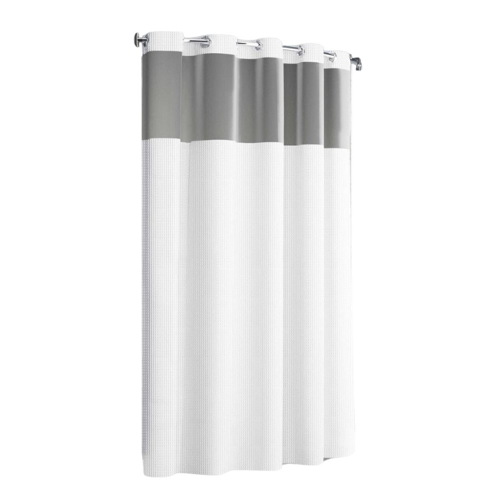 With window-Beige-BW7174EVBE -Zenna shower curtain 100% polyester box waffle easy hang with magnet end 71"x74" 12/cs