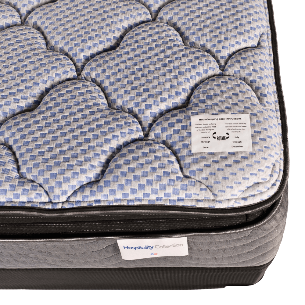 The Sovereign Pillowtop Standard King offers expansive sleeping space with balanced firmness and plush comfort. Its continuous support innerspring system promotes consistent support across the mattress while reinforced edges and layered foams enhance longevity in demanding hotel environments.